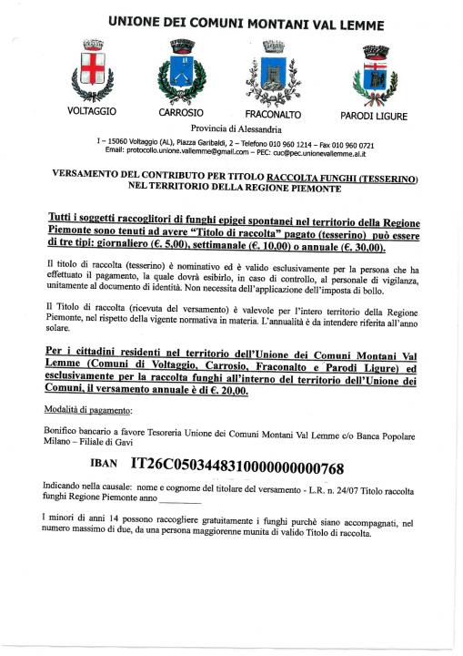 Ai cittadini che richiedono il titolo abilitativo (tesserino) alla raccolta funghi nel territorio del Piemonte.