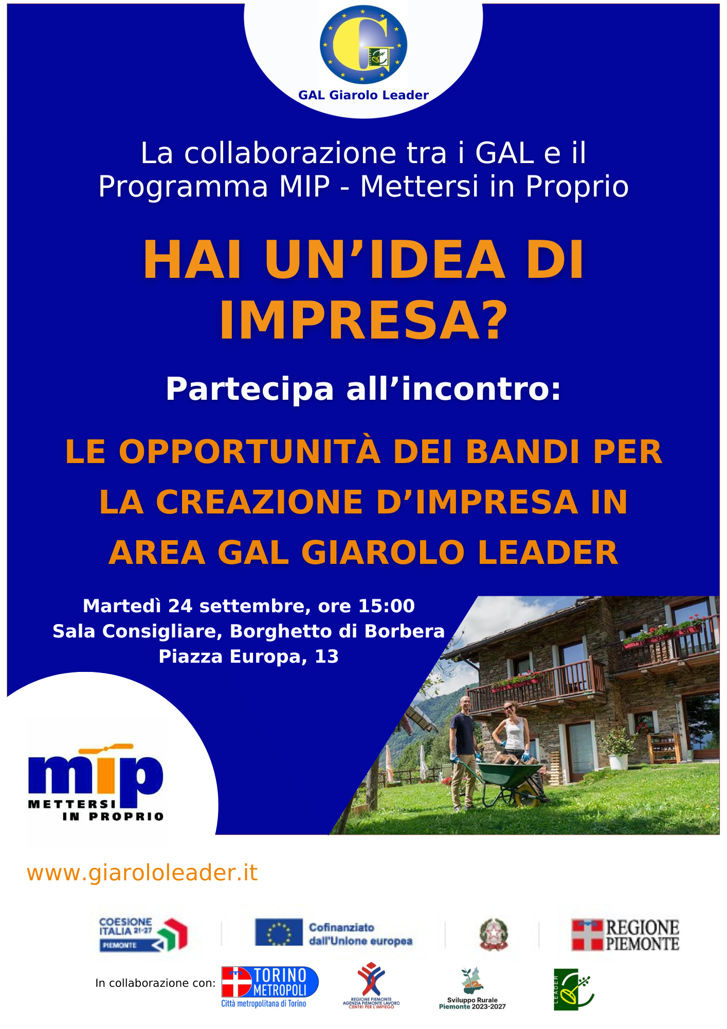 Incontro promosso dal GAL Giarolo Leader in collaborazione con il Programma MIP - Mettersi in proprio
