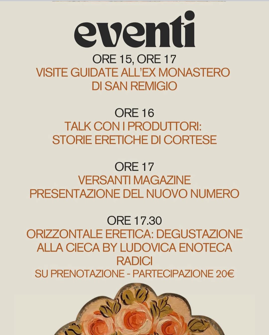 Degustazione vini, stand gastronomici, mercatino artigianato, convegni.